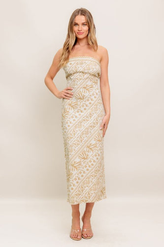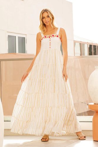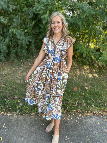 Cream and Green Flutter Sleeve Print Maxi Dress