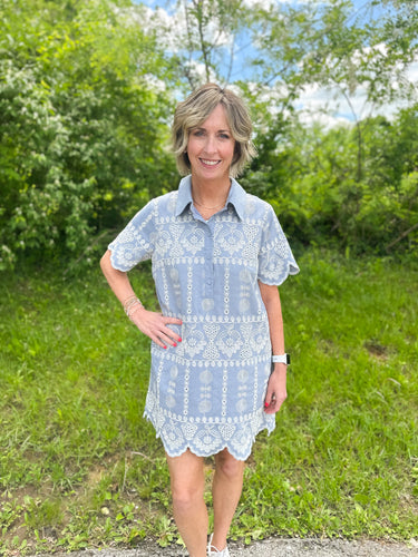 Denim Blue Embroidery Button Down Dress