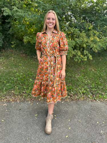 Autumn Floral Tiered Midi Dress