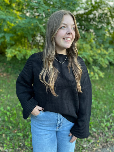 • Solid Mock Neck with Wide Sleeve