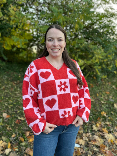 Botanical Print Knit Mock Neck Long Sleeve Top
