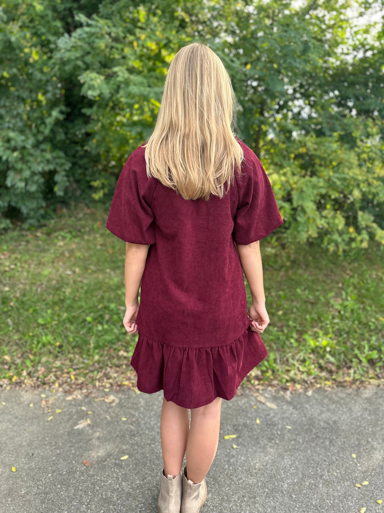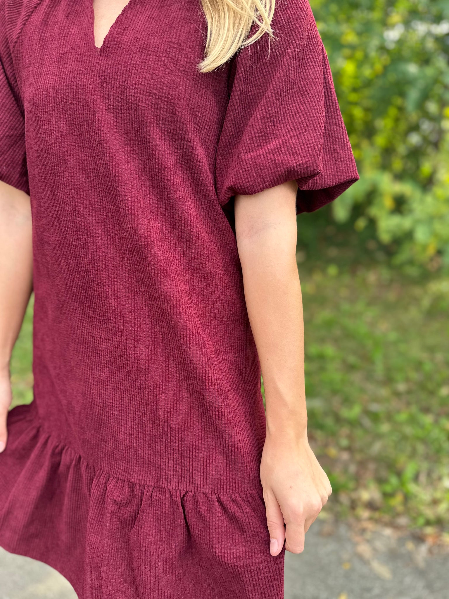 This Burgundy Puff Sleeve Corduroy Dress features a flattering drop waist silhouette that balances comfort and style. Crafted from soft, textured corduroy fabric, it offers warmth and durability ideal for cooler seasons. The puff sleeves add a refined, feminine touch, making it a versatile piece for both casual and dressier occasions. Its rich burgundy hue enriches any wardrobe with classic elegance.
