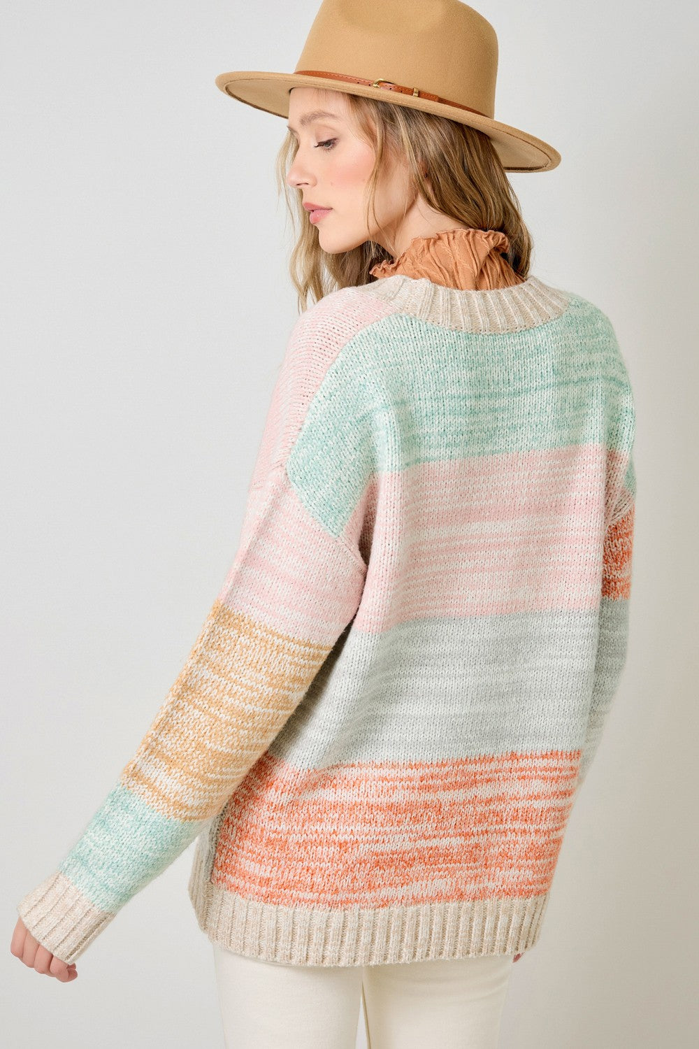 This Color Block Sweater Cardigan features a sophisticated melange color pattern, offering subtle depth and versatility. Designed with long sleeves and a classic button-down front, it provides both warmth and easy layering options. Ideal for professional or casual settings, this cardigan combines style and function seamlessly.