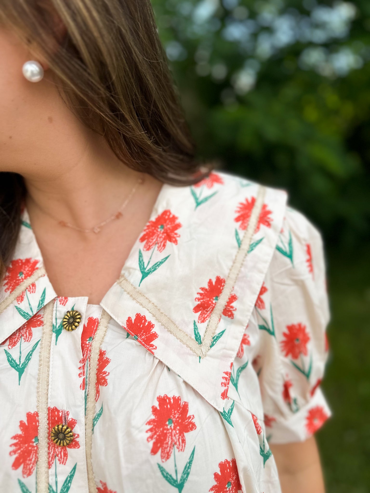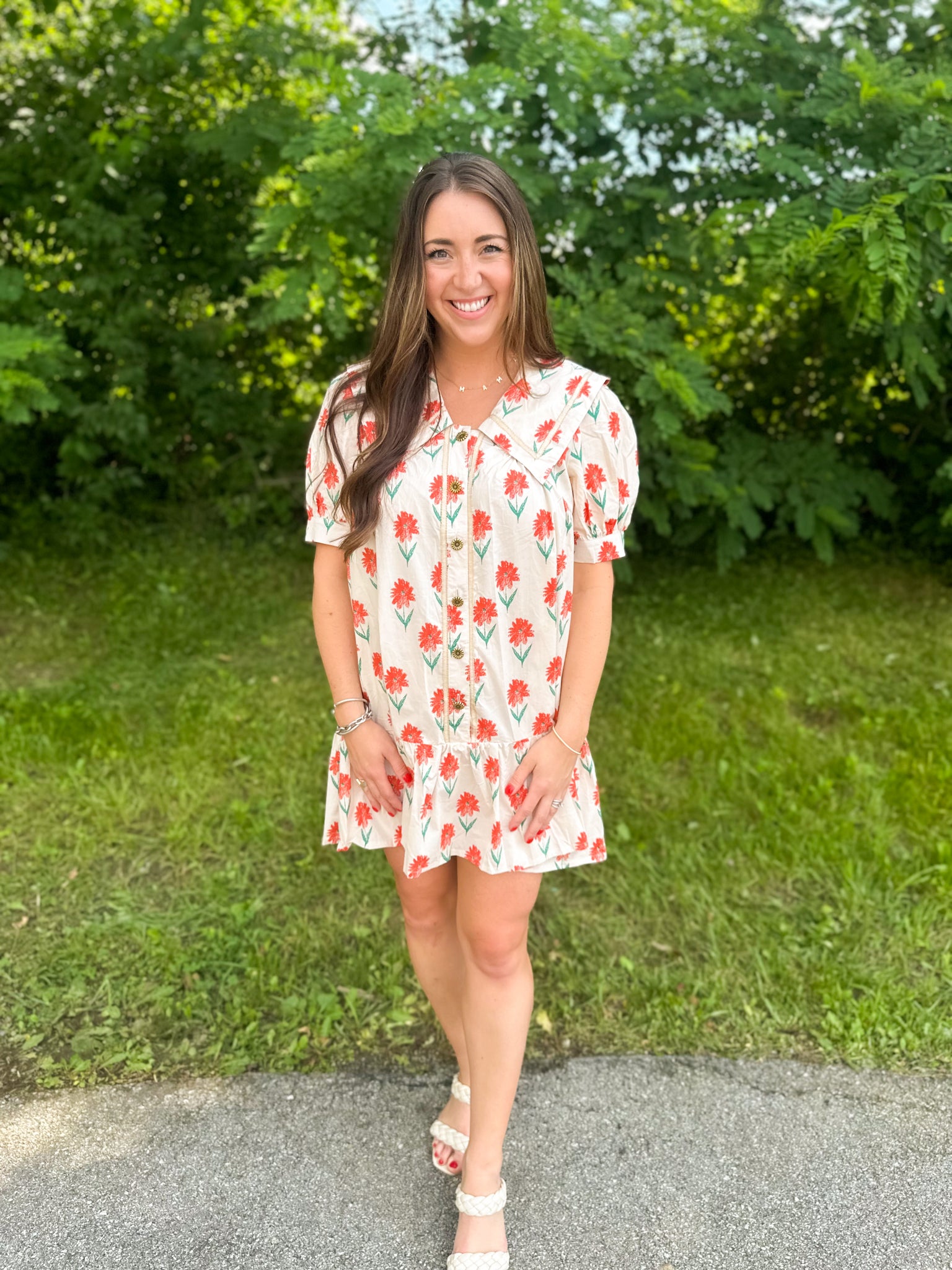 Elevate your wardrobe with the Cream Poppy Floral Print Dress, featuring a classic collar that adds a refined touch to its delicate floral design. Crafted for both comfort and style, this dress offers a flattering silhouette perfect for various occasions. Its soft cream background highlights vibrant poppy motifs, making it an elegant choice for day-to-evening wear.