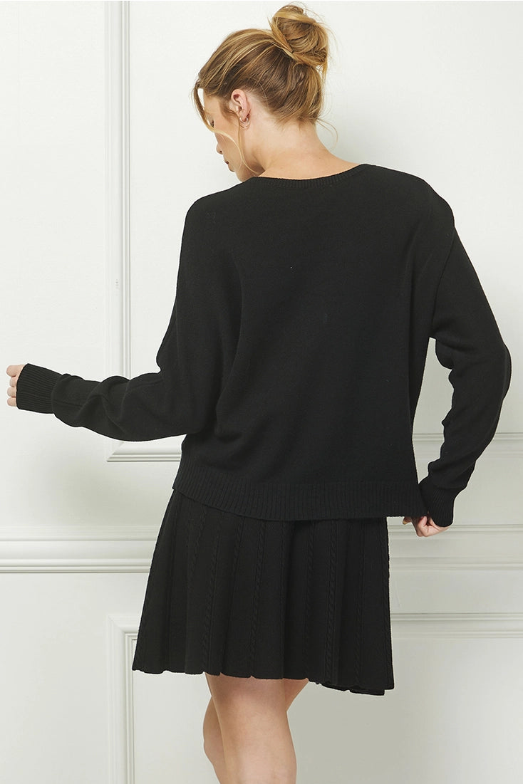 This contemporary-fit dolman pullover showcases a refined silhouette with soft fine gauge construction for exceptional comfort. The long sleeves feature the signature dolman cut, offering graceful movement and an effortlessly elegant drape. Raised hearts in contrasting tones add textural interest and visual depth to the piece. Crafted from luxurious viscose, the fabric provides a smooth, breathable quality with a subtle sheen that elevates everyday wear. The round neckline completes the understated sophistication of this versatile layering essential.