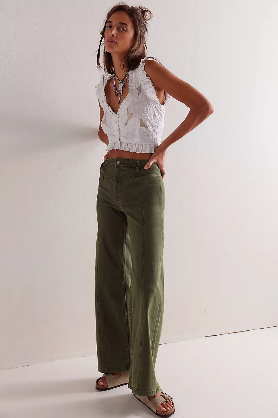 Fit: Mid-rise, slouchy, relaxed fit, wide-legs, ankle-length; this style runs slightly large so we recommend sizing down one size