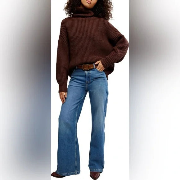 Features: Comfy chunky knit w/ boxy silhouette, pull-over style, turtle neck, long sleeves with drop shoulders, ribbed collar, cuffs and hem.