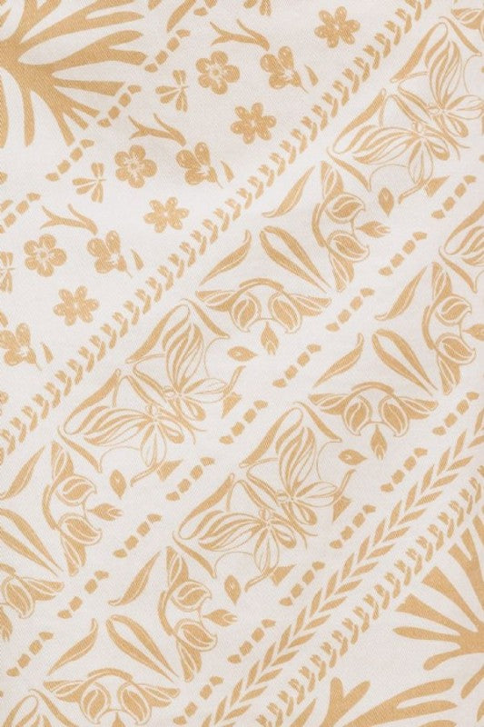 This ivory strapless midi dress combines elegance with modern design. Featuring a printed woven fabric, it offers a structured tube top that enhances the silhouette, paired with a flattering H-line skirt for comfortable movement. The back zipper closure ensures a secure fit, making it an ideal choice for sophisticated occasions.
