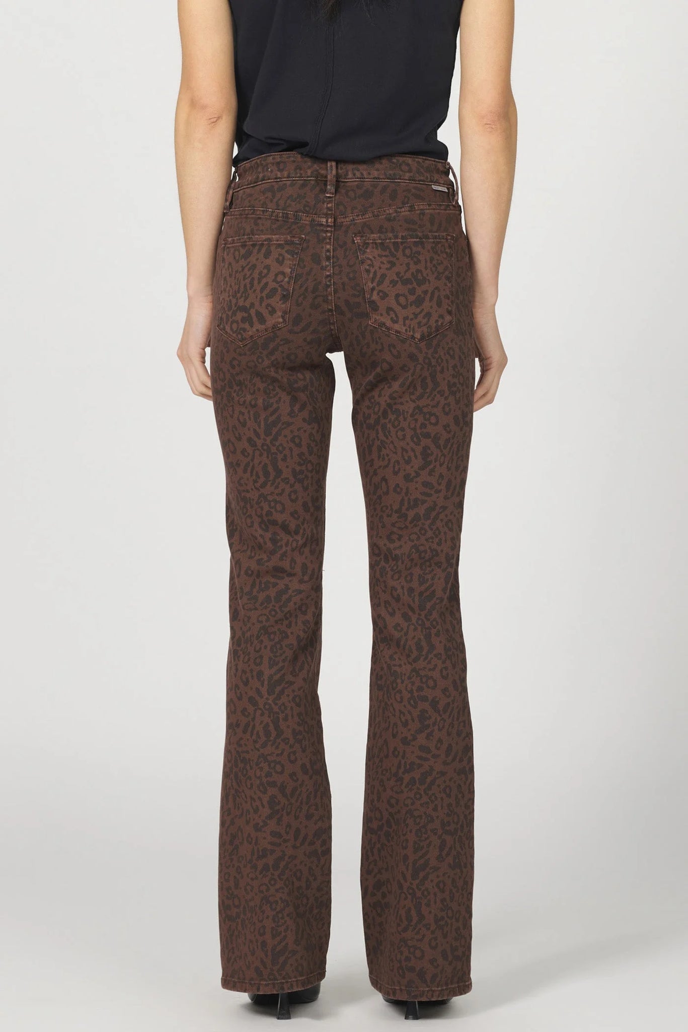 These pants offer a sleek look with their chic brown leopard pattern, effortlessly blending trendiness with practicality.