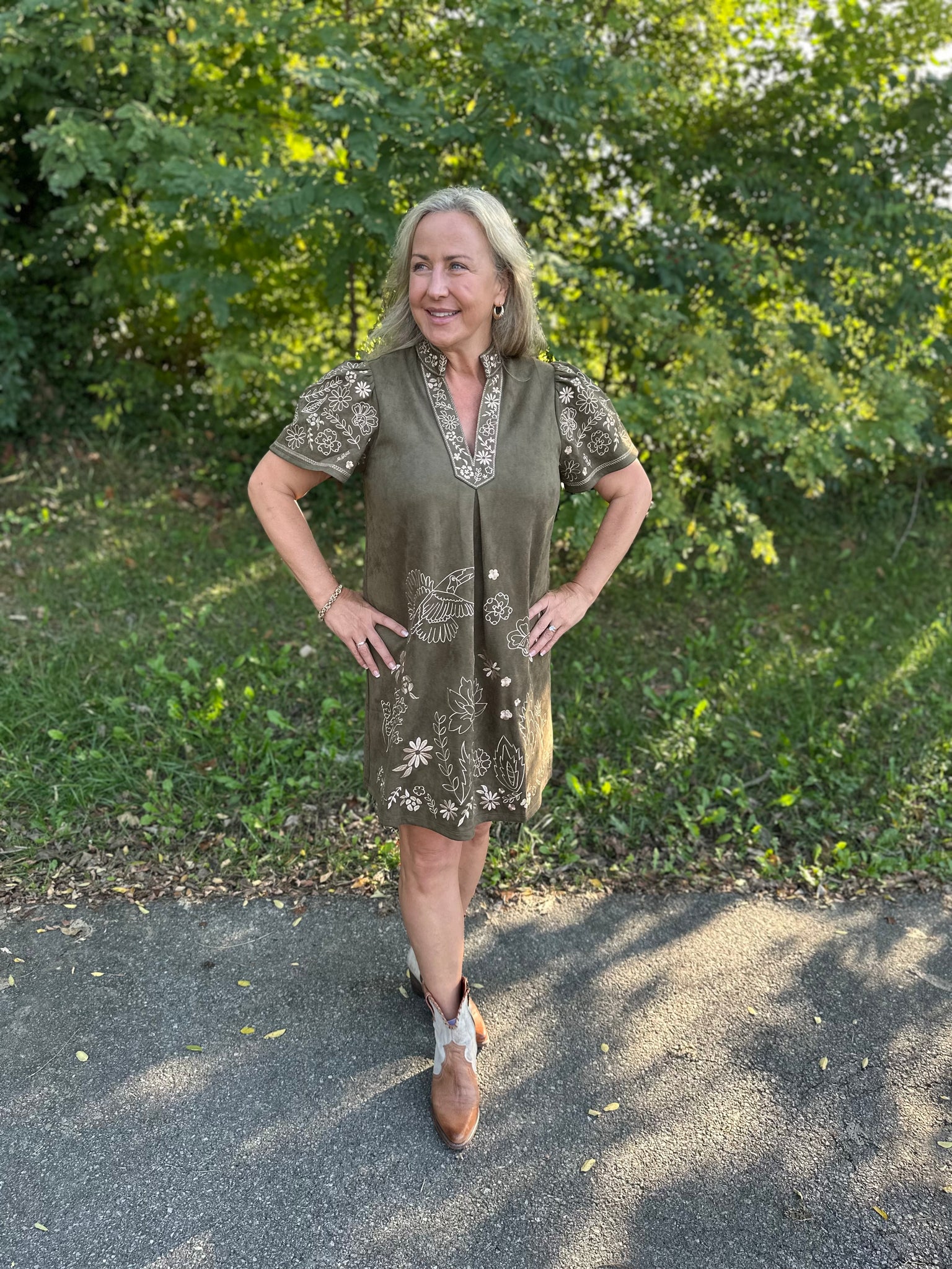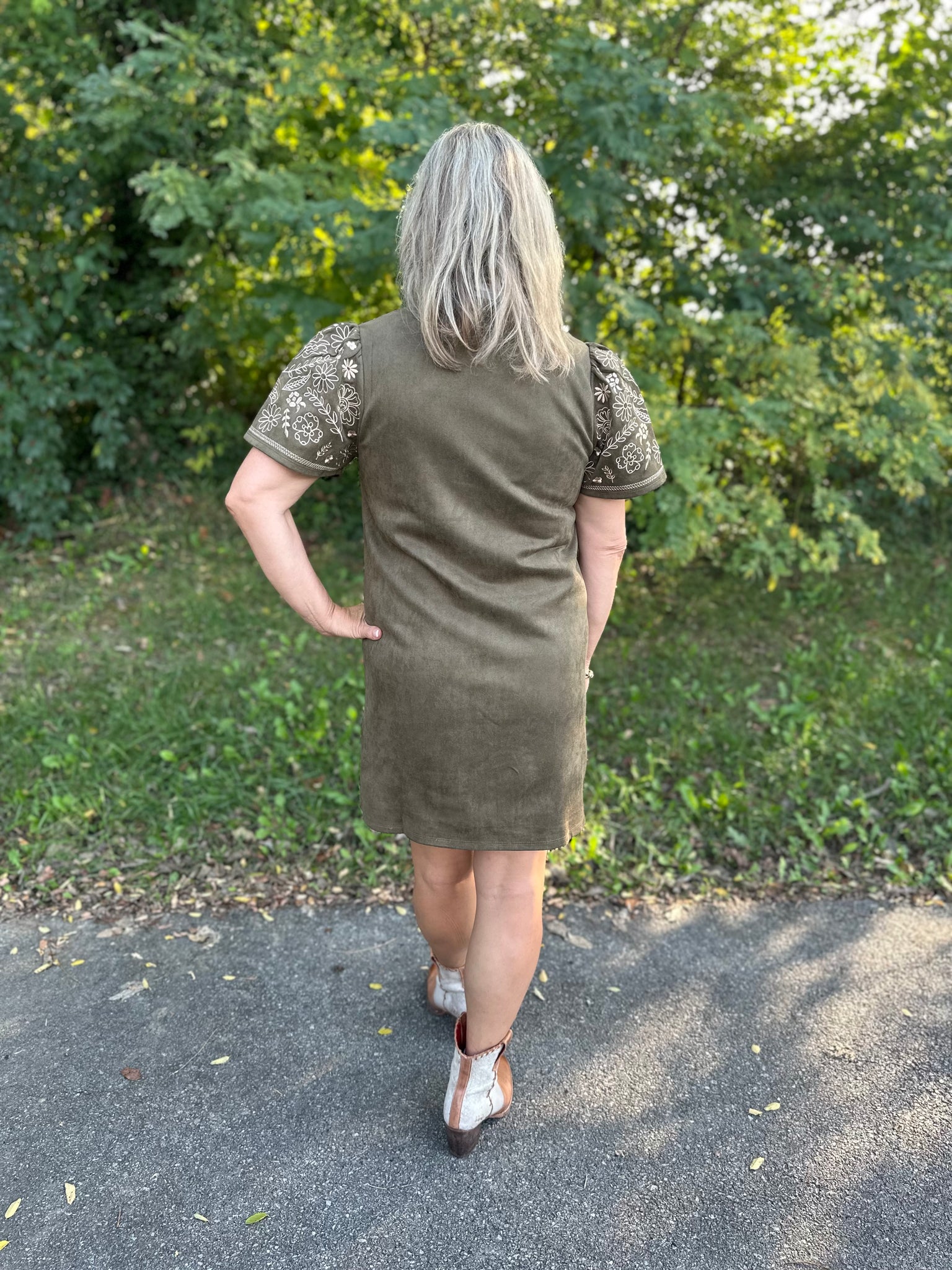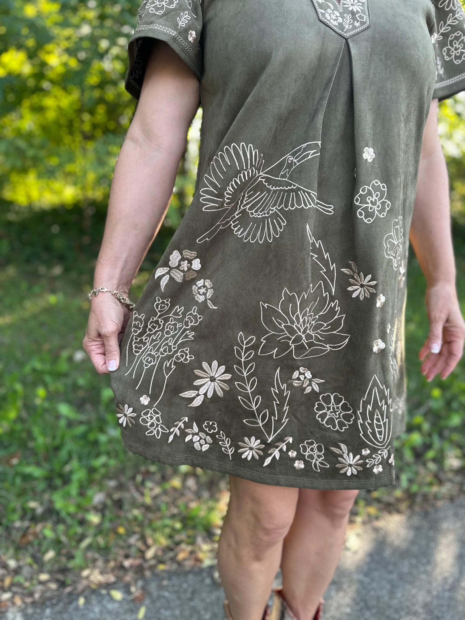 Elevate your wardrobe with the Olive Short Sleeve Embroidered Detail Dress, featuring intricate embroidery that adds subtle sophistication. Designed with breathable short sleeves and a flattering cut, this dress offers both comfort and style for versatile wear throughout the day. Its refined detailing makes it ideal for both casual outings and more polished occasions.