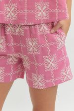 Elevate your warm-weather wardrobe with this charming embroidered sleeveless top paired with coordinating shorts. The top features delicate embroidery detailing, a practical back button closure, and a lined, non-sheer construction for comfortable all-day wear. Crafted from lightweight woven fabric, this set offers effortless style perfect for casual outings, weekend getaways, or relaxed gatherings. Mix and match the pieces or wear them together for a polished, put-together look.