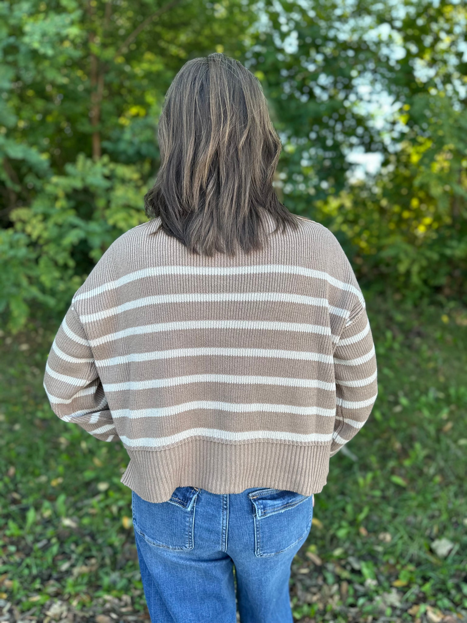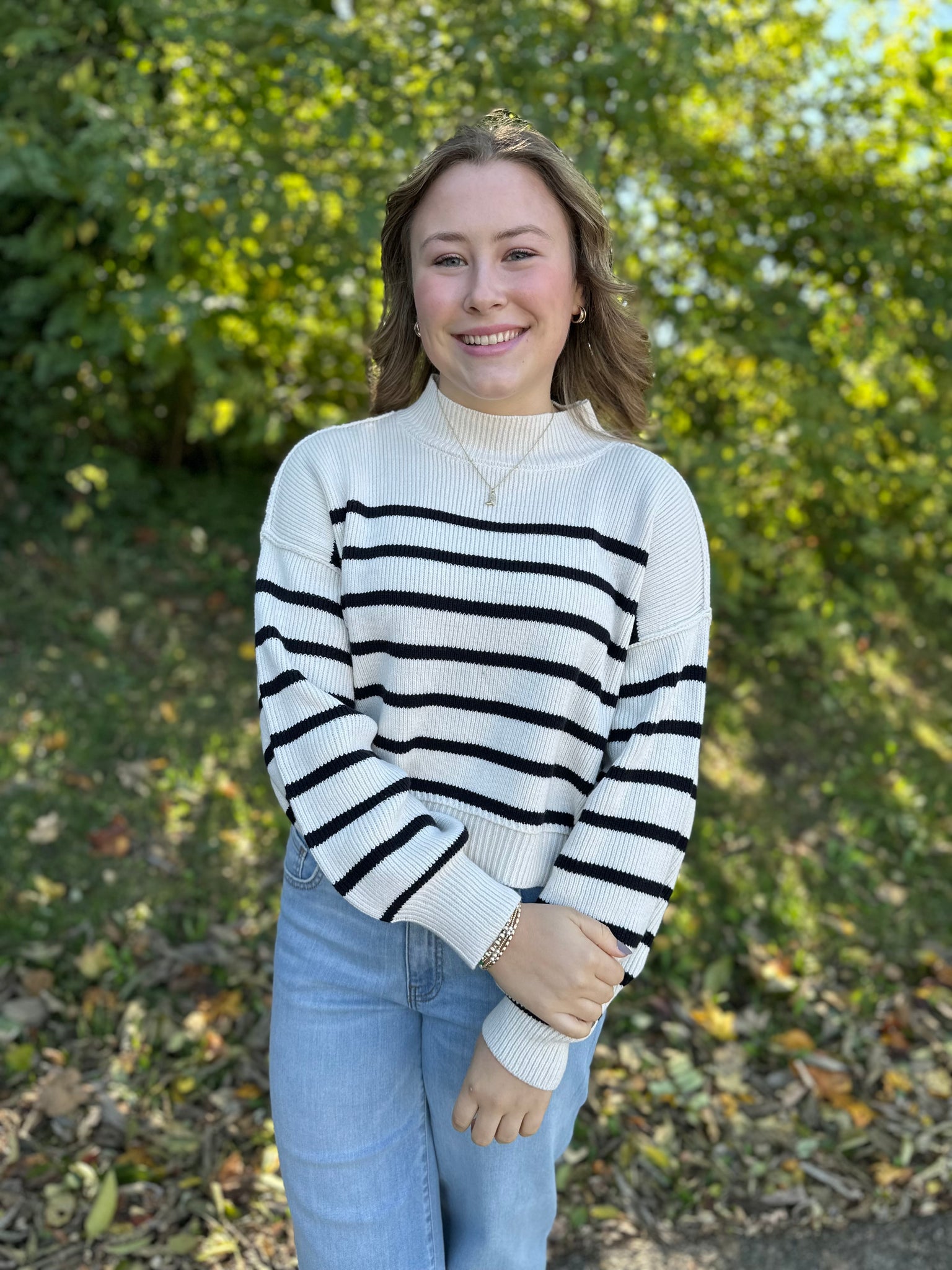 This long-sleeve striped sweater combines classic design with expert craftsmanship. Its soft fabric ensures comfort and durability, making it ideal for layering in cooler weather. The timeless stripe pattern adds a refined touch to any outfit, suitable for both casual and professional settings.