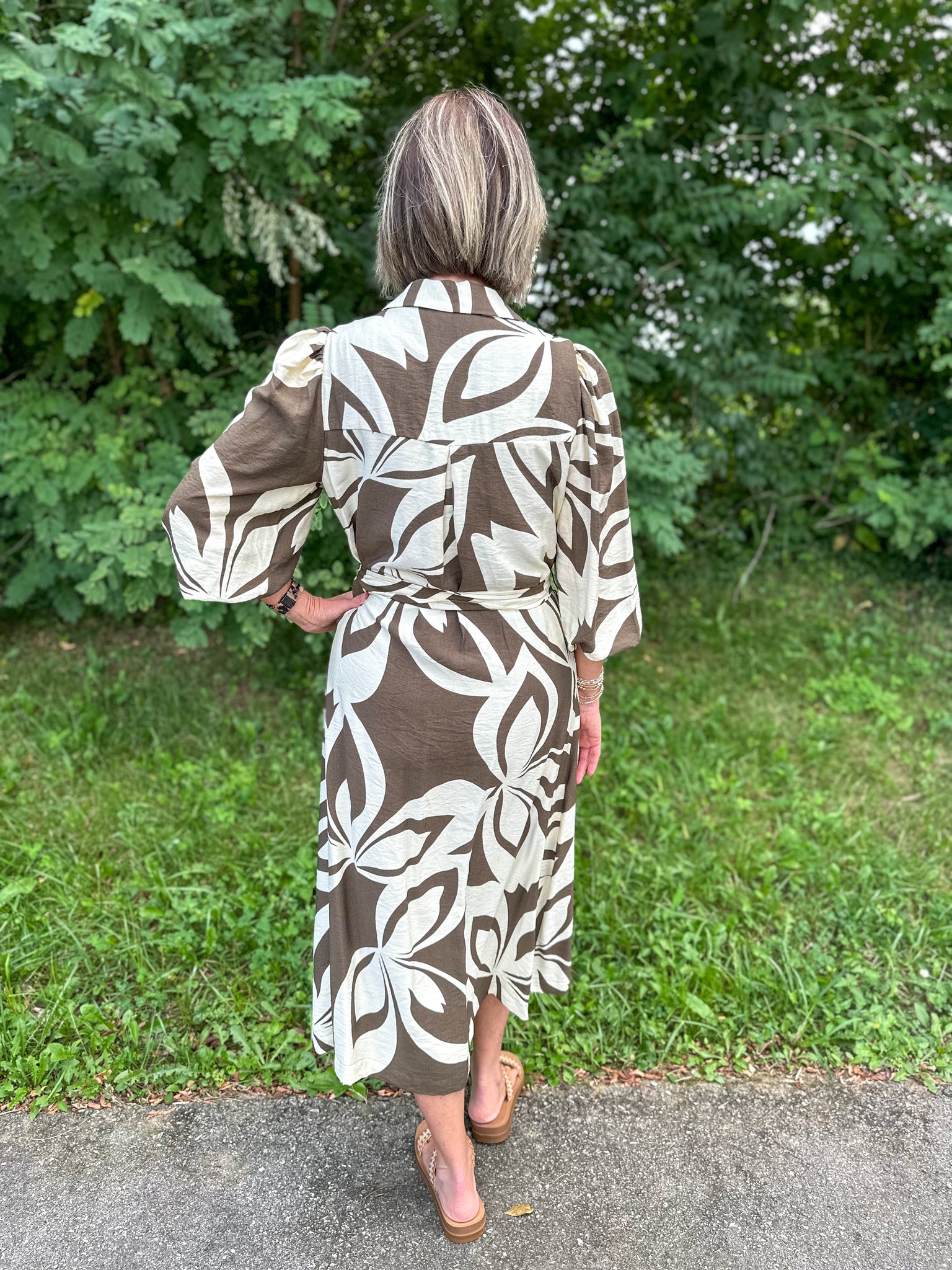 This Two Tone Abstract Print Shirt Dress features a bold abstract design that adds a modern edge to classic styling. The collared V-neck and front button-down detail offer a polished look, while the self-tie belt cinches the waist for a flattering silhouette. Its midi length provides versatile wearability, making it suitable for both professional settings and casual outings. Crafted to combine comfort with contemporary fashion, this dress is an expert choice for those seeking effortless sophistication.