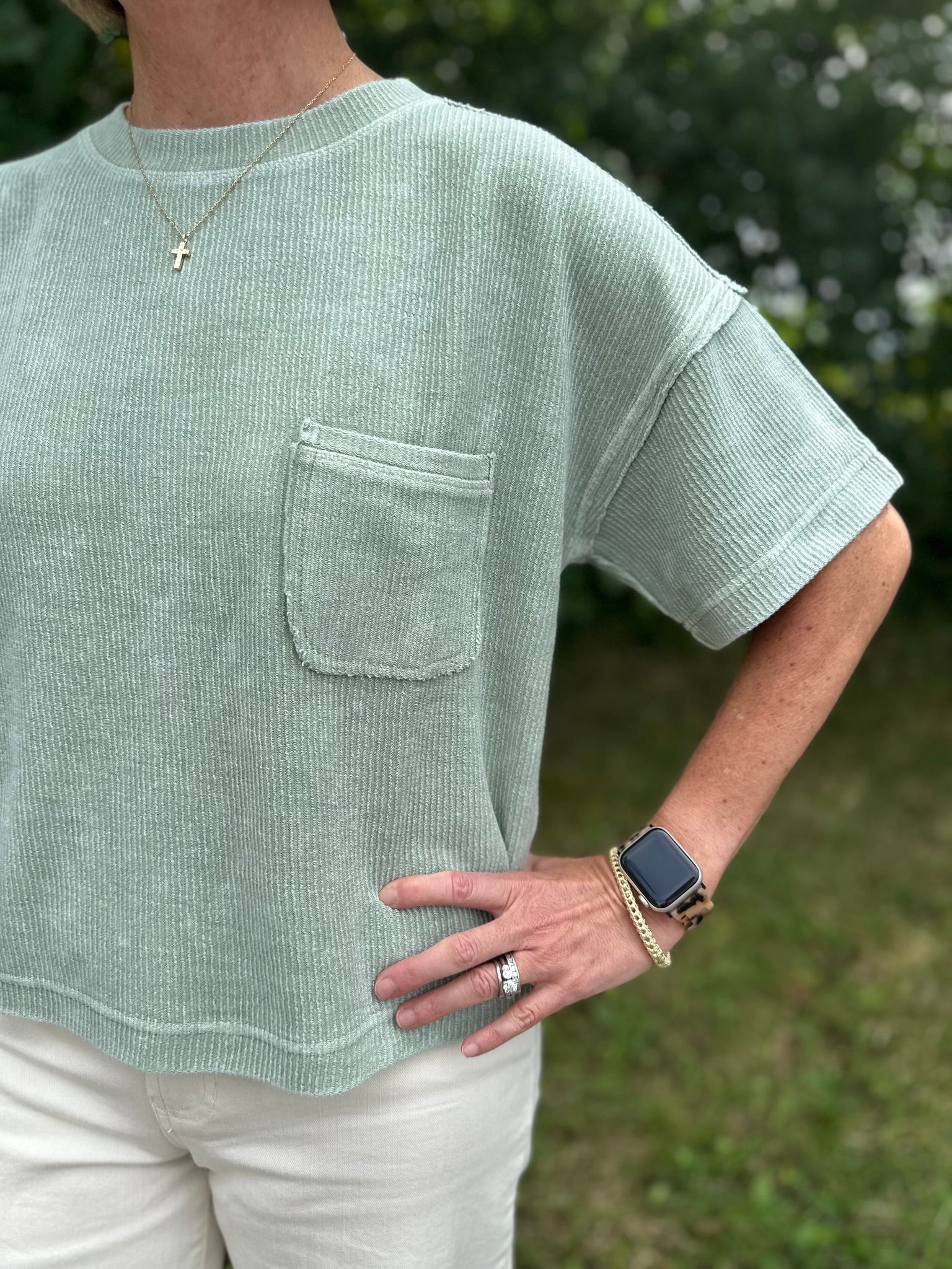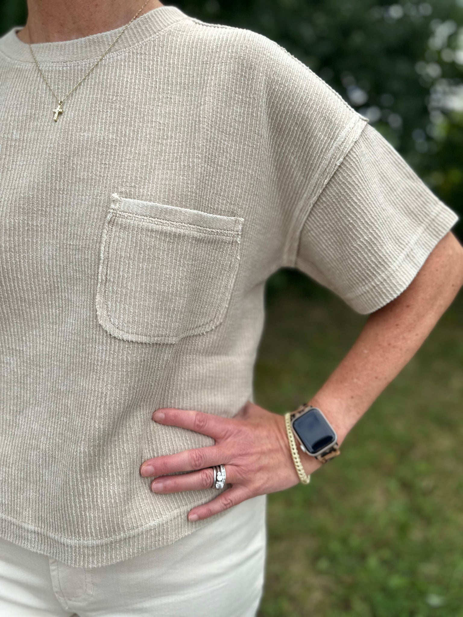 This Washed Ribbed Short Sleeve Top offers a relaxed yet refined look, crafted from soft ribbed fabric that ensures comfort and subtle texture. Its short sleeves and convenient chest pocket combine practicality with casual style, making it a versatile choice for everyday wear. The gentle washed finish adds a lived-in feel, perfect for layering or wearing alone with effortless ease.